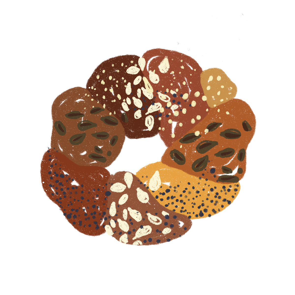 Pan esponjoso cubierto con semillas. Elaborado con nuestra receta especial.