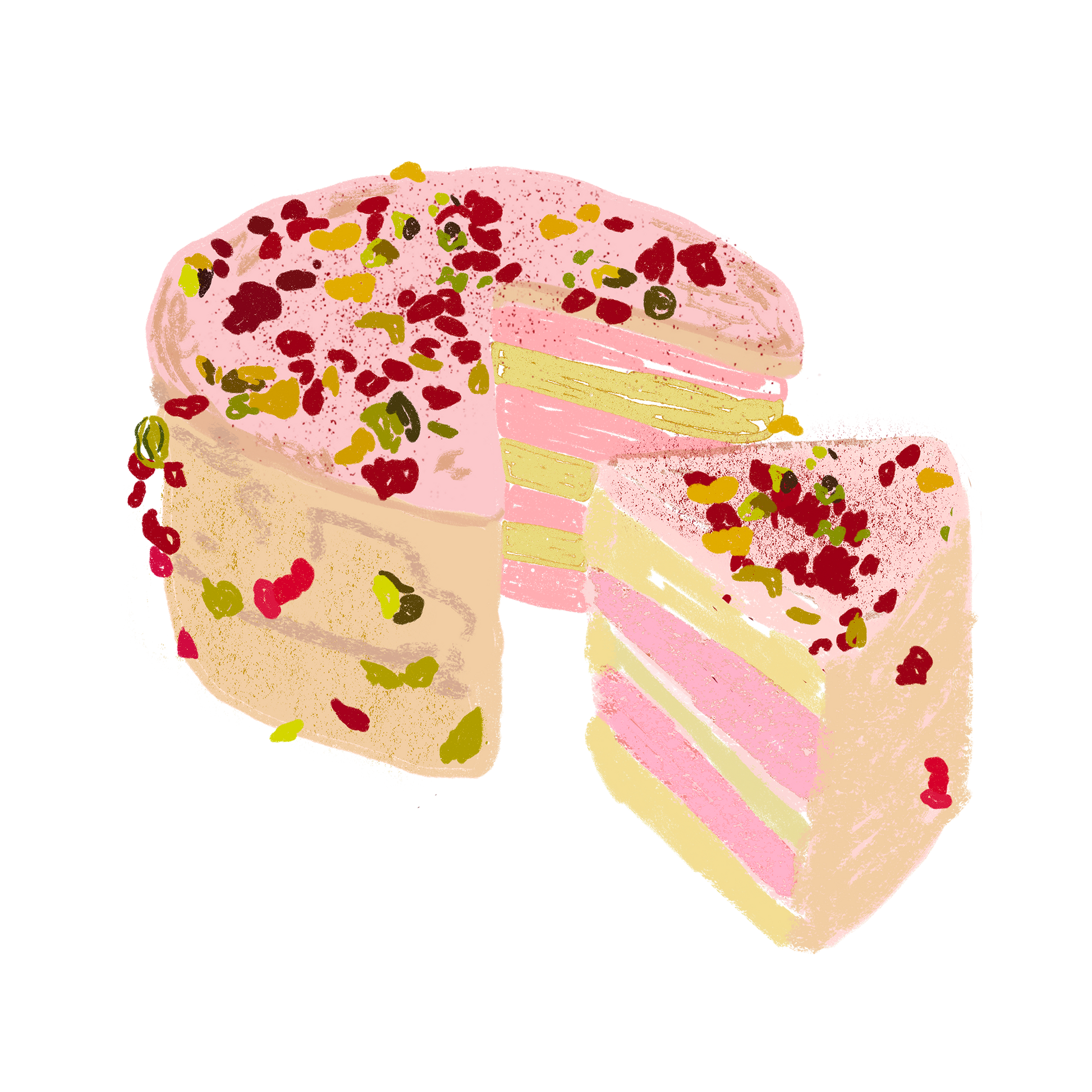 Raspberry, pistachio and vanilla cake. 2 servings.